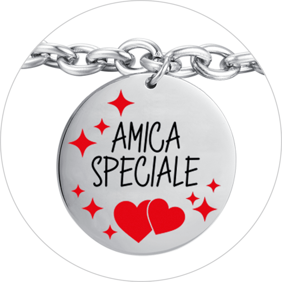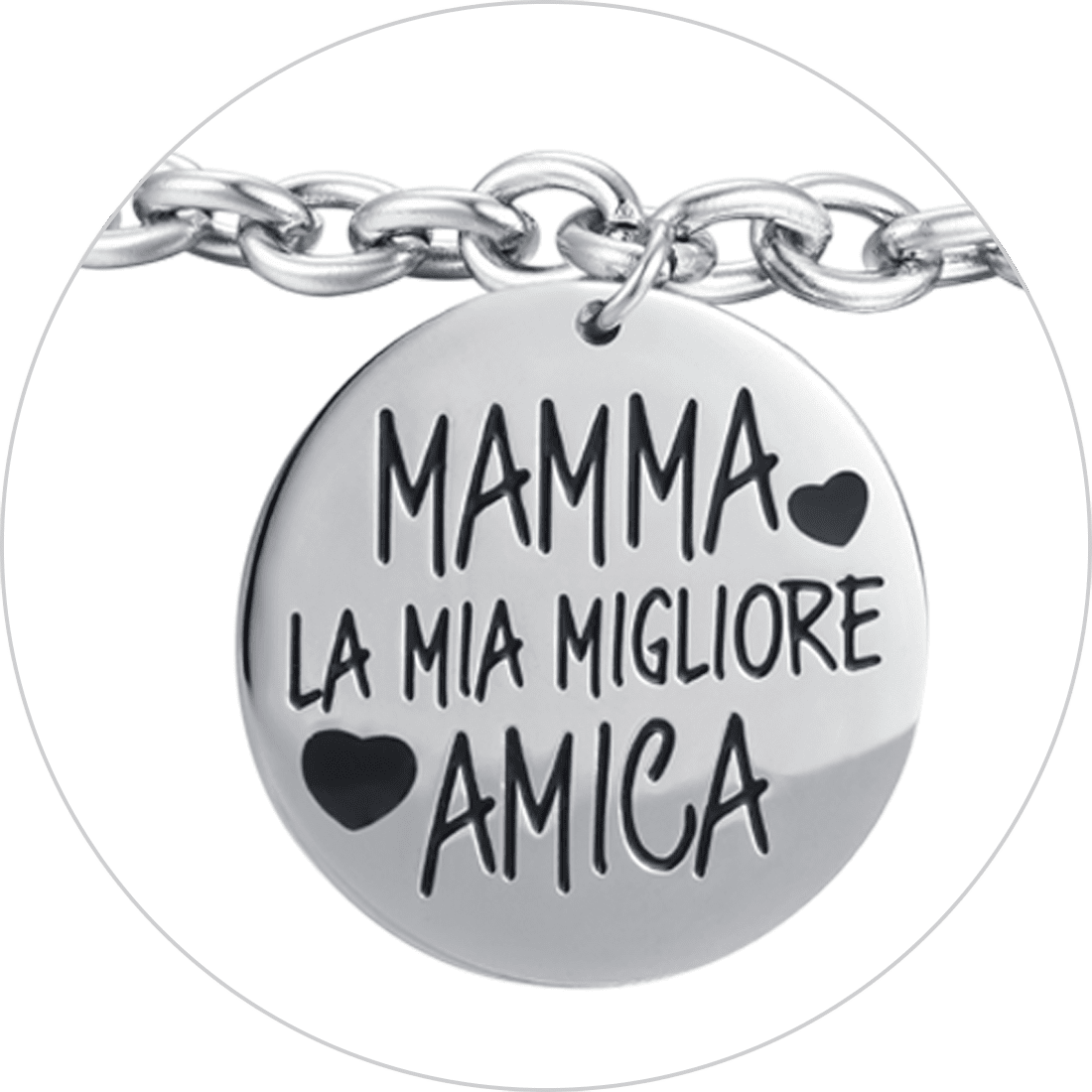 Nous avons fait de l'acier le protagoniste de notre production, ce qui vous permet d'acheter des bijoux pour tous les budgets. Mais capable, en même temps, de se révéler extrêmement résistant dans le temps : pas d'accidents, pas de décoloration ou de noircissement et pas de réactions allergiques. Un matériau polyvalent et extrêmement résistant, excellent pour un collier de fête des mères ou un cadeau de fête des pères. Découvrez nos bijoux pour un cadeau de Saint-Valentin vraiment unique ; trouvez le cadeau parfait pour la fête des grands-parents ou pour Noël.