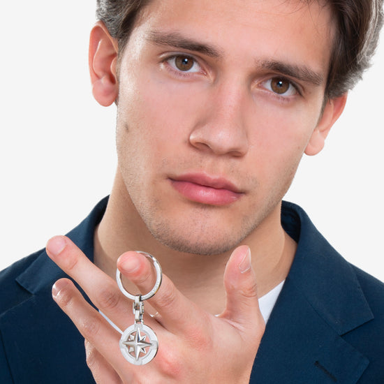 PORTE-CLÉS HOMME EN ACIER AVEC ROSE DES VENTS